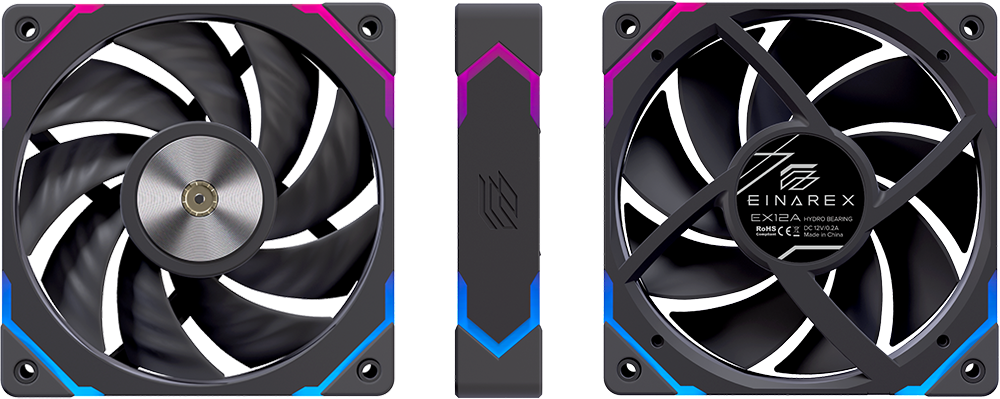 Optimized for radiators and heatsinks. The EX12A’s high performance ensures efficient heat dissipation in the high-performance machine. The elegant RGB effect lights up your device gently.