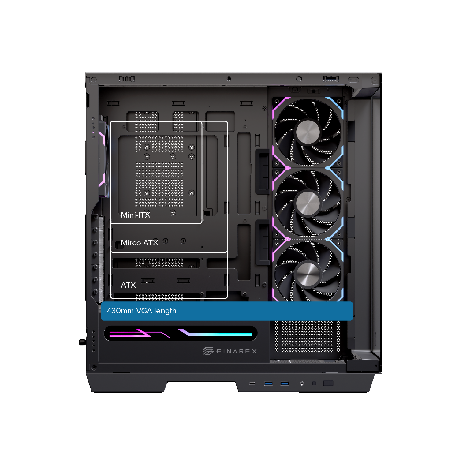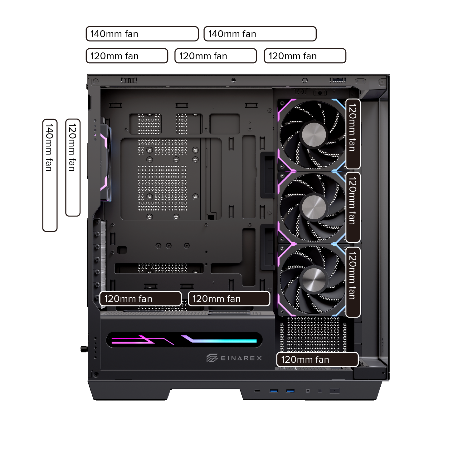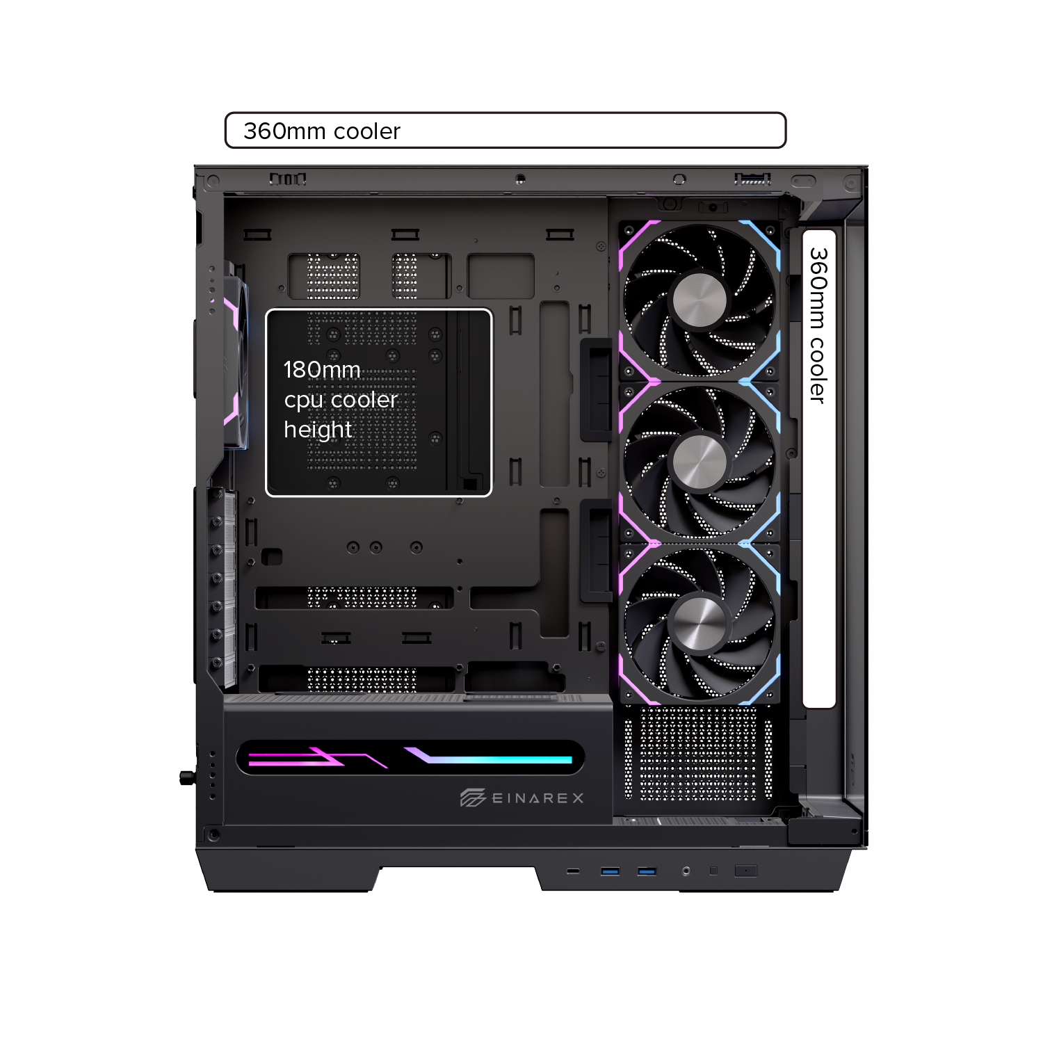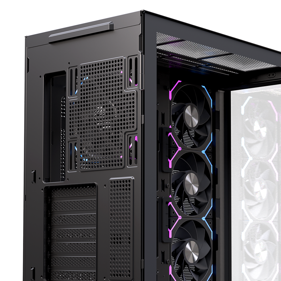 From the top to the PSU bay, the Z1K is lined with perforated panels and supports up to 10x120mm fans, also have 140 mm fans options at the top and rear. Side-mounted 360 mm radiator support ensures that airflow moves through your build—not around it.