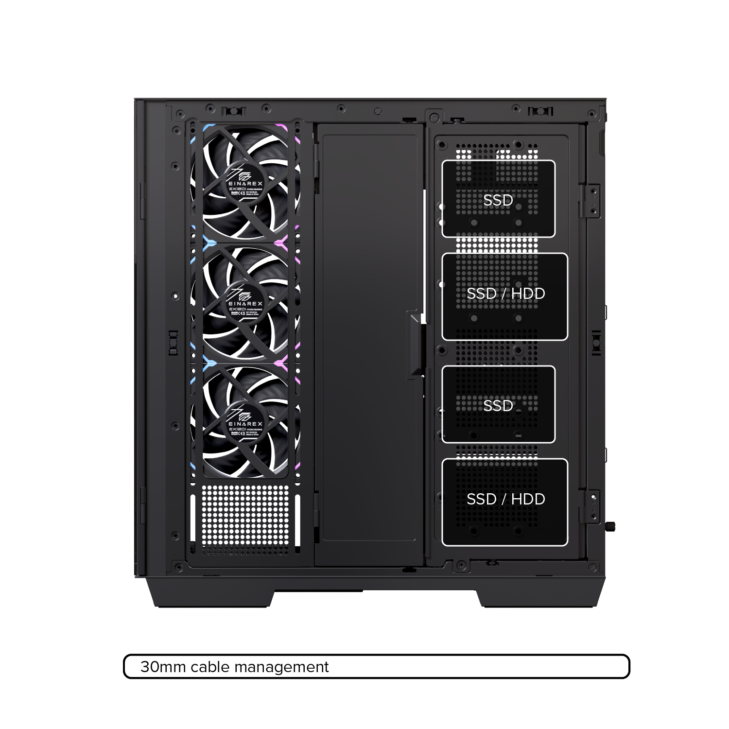 The ZENITH Z1K isn’t just made to look good—it’s designed to change how you build up your system. With swing-open tempered glass doors on both the front and side, it offers a fluid, confident, and satisfying build process. No clumsy panels. No hesitation. It’s a build experience made for those who know exactly what they’re doing.